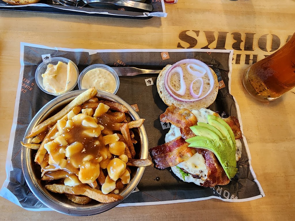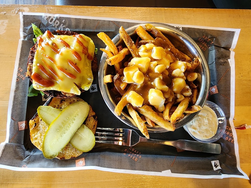 Great place. The food was delicious, the options were amazing, and they have GLUTEN FREE buns and VEGAN burgers if you're so inclined, and I'm told they tasted amazing (they're the Beyond Meat brand for those who are particular). I can't remember what the burger name was; I just know you can get anything you want. I think I added avocado or changed the cheese and got the sauce on the side. They were very accommodating. For poutine purists, the cheese was squeaky and didn't melt easily. Very yummy and stringy when it did. The poutine is vegetarian, so there are a lot of options for meatatarians and vegetarians at this place, more than other burger joints.