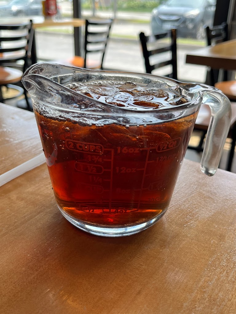 The restaurant has lots of choices of burgers. I ordered the sweet chicka chicka boom boom sandwich and my hubby ordered the get piggy with it. They come with a side. We got the fries. The ice tea came in a measuring cup. The service was ok. She wasn’t the friendliest. The restaurant was empty when we got there a 1:00pm on a Saturday.