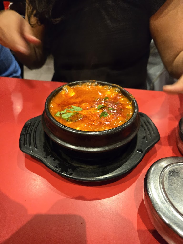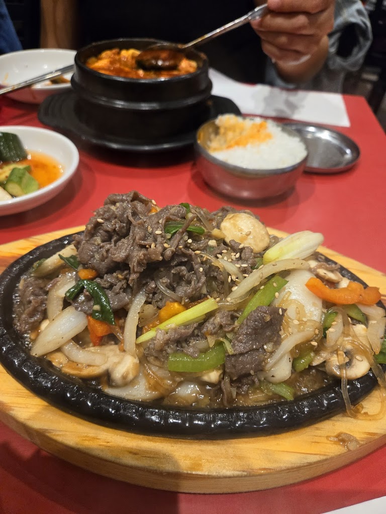 Delicious food in a comfortable place. Staff was wonderful, thoughtful and attentive. We enjoyed the sizzling Bulgogi, SoonDuBu, Bokeum Ramen, and honey garlic butter chicken. The price was just right for the large portions and banchan (vegetable side dishes).