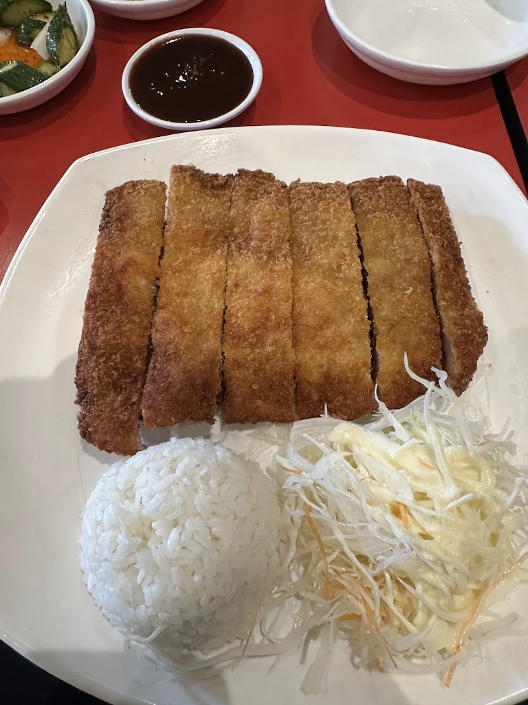Delicious food, super friendly staff!! Don Katsu fish and their delicious Korean fried chicken in the honey butter sauce. Delicious!!!!! Food