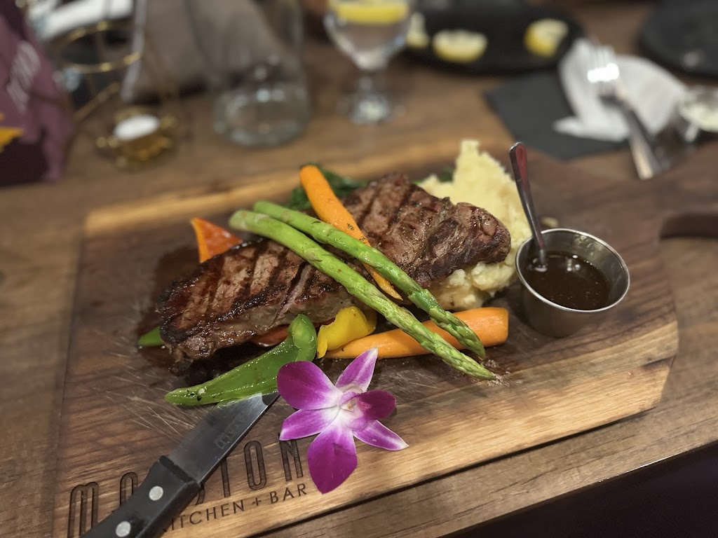 One of my best friends turned fifty, and I wanted to take him out for a nice meal. I chose Mansion Kitchen + Bar based on some online sleuthing. Reservations were easy to make (and modify). There was plenty of parking and it was easy to enter the lot and the restaurant (there is an accessible ramp for those that need it). The location looks nice and was decorated with Halloween decor. Our server was very engaged, helpful, and efficient. She made sure that we were comfortable and was timely with her service. The drinks were delicious and the food was really great. We split some duck (skewers) and both ordered the 8 oz striploin. Everything tasted great - and the vegetables were very fresh. Thanks so much for making this a great experience! I know Ill be coming back!