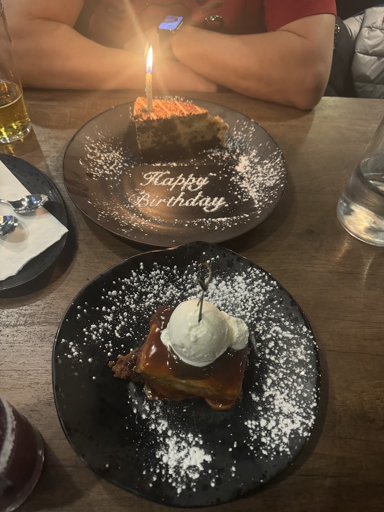 Jaimie our server is simply awesome - super friendly, super nice. She said she was new but her recommendations get our stamp of approval (except for the duck in skewers - hubby and I didn’t really like it - but happy that Jaimie took it back to the kitchen and had it taken out from our tab). The calamare was nice. My blueberry coconut cocktail was so good that I had to order another one. Lamb chop was really cooked well and tasted great. Mashed potato was amazing. Had some leftovers and would have taken them home if I can. Desserts were also good. Hubby got the tiramisu cheesecake which he loved and I had the sticky toffee pudding topped with vanilla ice cream. Would surely come back. 😊♥️