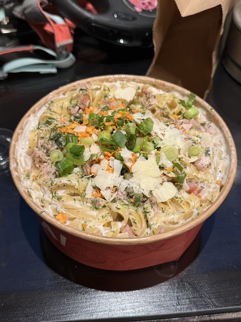 Very long wait of 20 minutes just to have my meal in a cardboard bowl. My pasta was OK, but too expensive overall. I wont go back