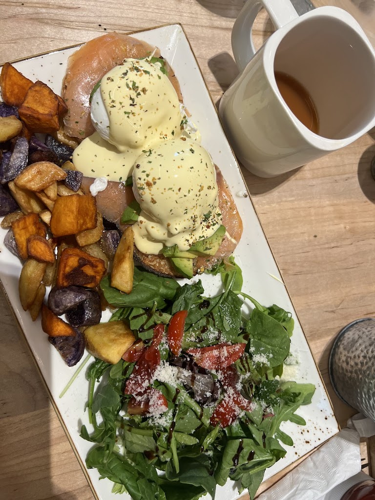 Amazing experience!! We came here for our 2 year anniversary. The service was great and quick. Nice atmosphere. We were pleasantly surprised. My smoked salmon Benedict was presented really well and delicious