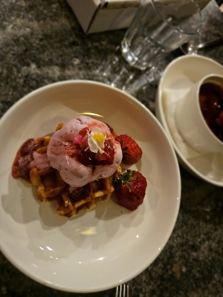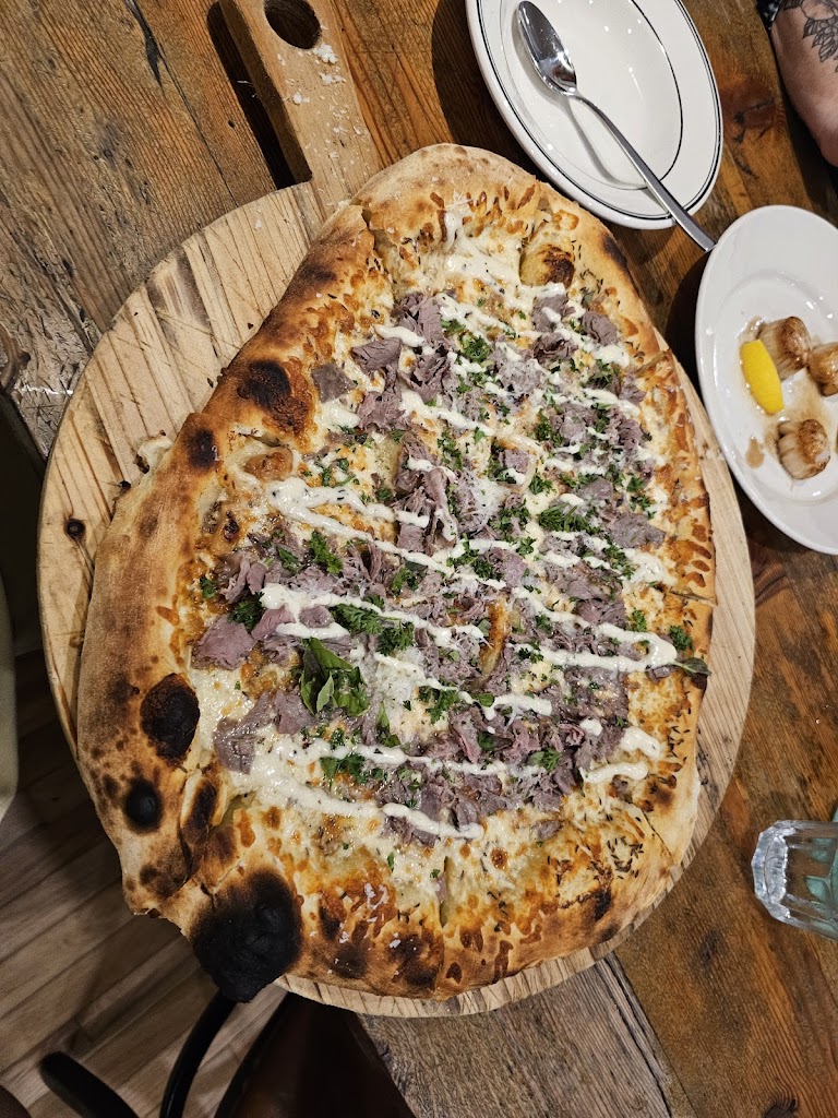 Excellent atmosphere and service. Food was delicious and impeccably presented. The sourdough pizza is uniquely delicious - a refreshing take definitely not derivative pizza Napoletana. Worth the visit by itself. The pizzas are much larger than the ~13 you would find at most upscale places - definitely appropriate for sharing. Dessert - Belgian waffle with delicately sugared apple and caramel - was outstanding. Highly recommend.