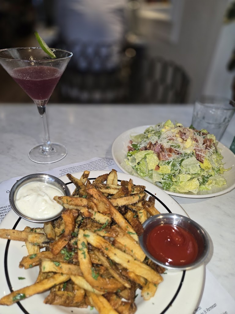 It s a very beautiful space to enjoy dinner. Ordered steak frites and was a little disappointed with the quality of cut and size of the steak but the fries were the best fries ever (parmesan and garlic dusted). Ask for garlic aioli to dip them in and it s just amazing. Our server was very kind and prompt.