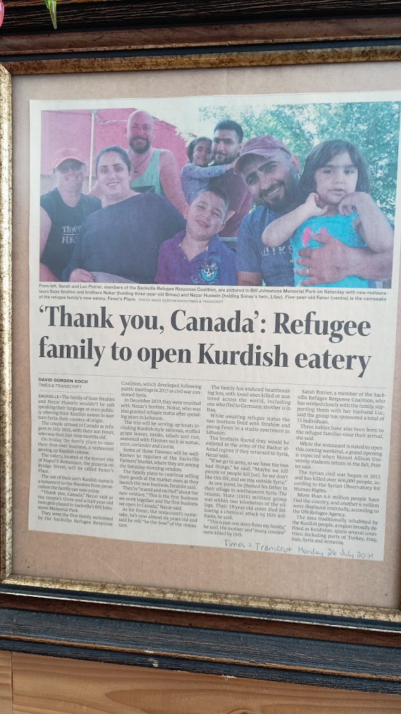 If you ever go to Sackville NB, drop by Feners Place. Great kurdish food! Garlic fingers with garlic sauce is a must try. They have great selections of food. Try their kurdish coffee with kurdish honey cake for dessert it pairs well together. Wonderful owners. Their food taste great! It was a great experienced and worth the drive.