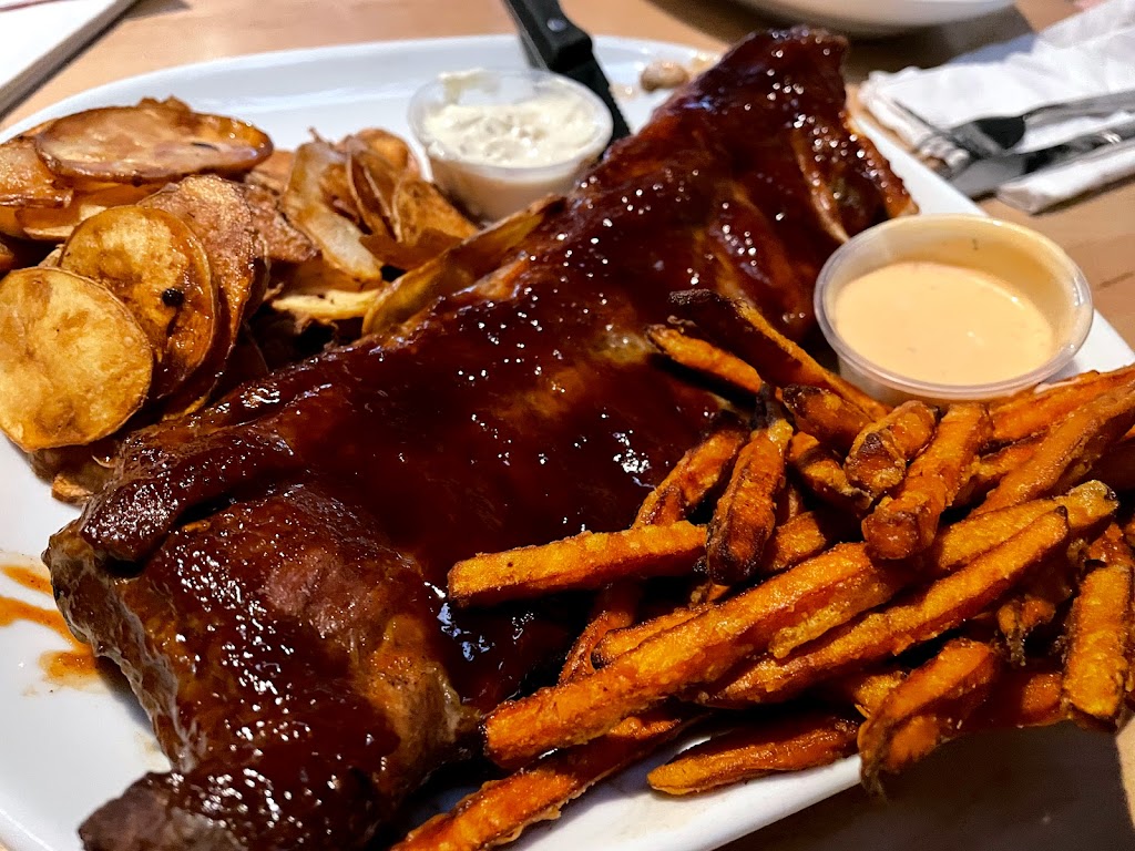 WoW nice atmosphere in the dining room but I also love the bar side lots of menu choices at a reasonable price. Parking: Very large parking lot