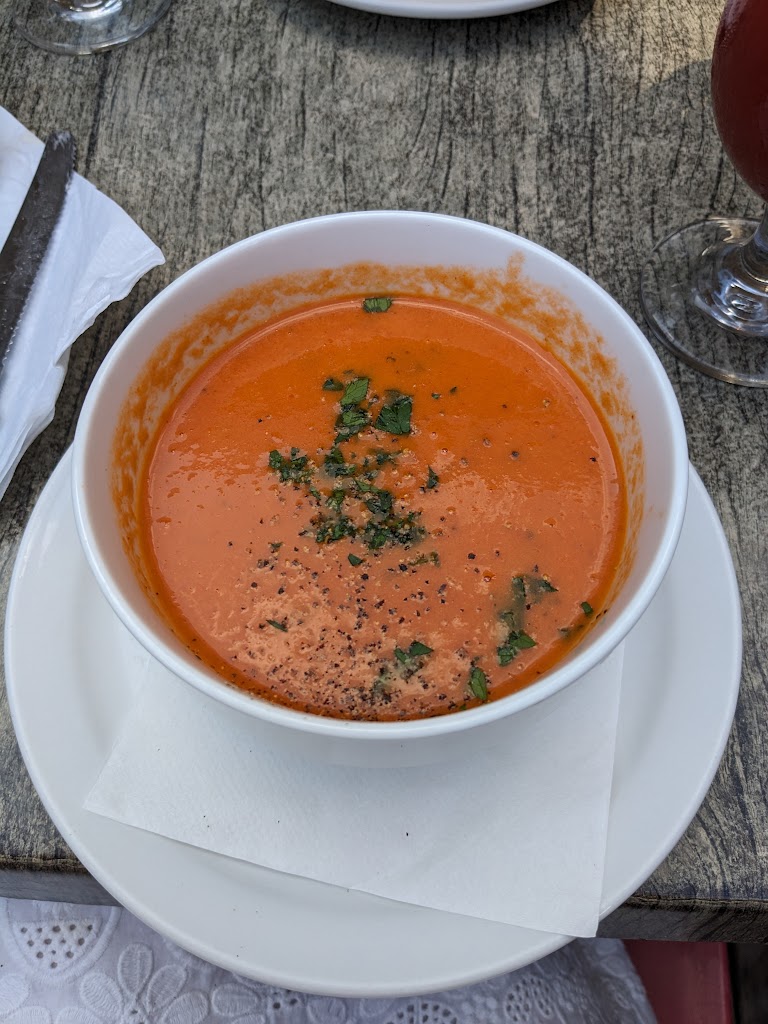 Food was super good, as simple as a vegetable soup that was delicious. The customer service was great !! Super friendly !! Definitely coming back !!