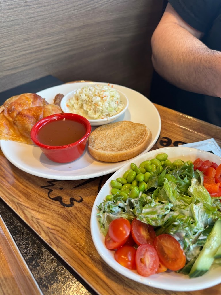 We ordered online, and scheduled to pick it up in 20-mins. The meal was ready and nicely packed exactly on time. Though they forgot our sauce (not the chicken sauce, but the extra sauces that the website had asked us to fill out; they didn’t pack them on both meals we’ve ordered.) Excellent chicken nuggets. Loved the ribs and chicken leg as well. Fresh salade. A really enjoyable meal.