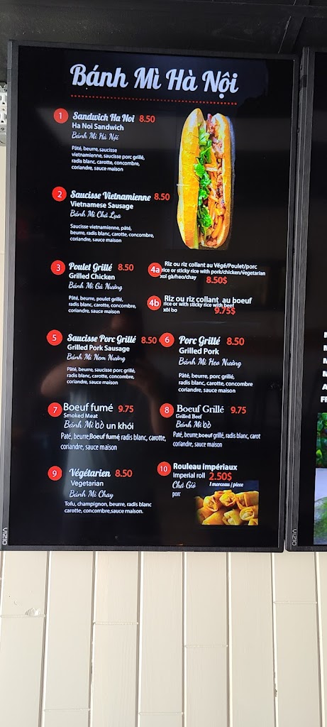 Mets offert : BÀNH MÌ , sandwich vietnamien, soupe Wonton, rouleaux impériaux , pizza sushi, Wonton frit , plat de riz gluant avec choix de viande … , option végétarienne offert BUBBLE TEA , thé aux fruit Frapper glacé, soda aux fruits, thé aux lait, café glacé vietnamien