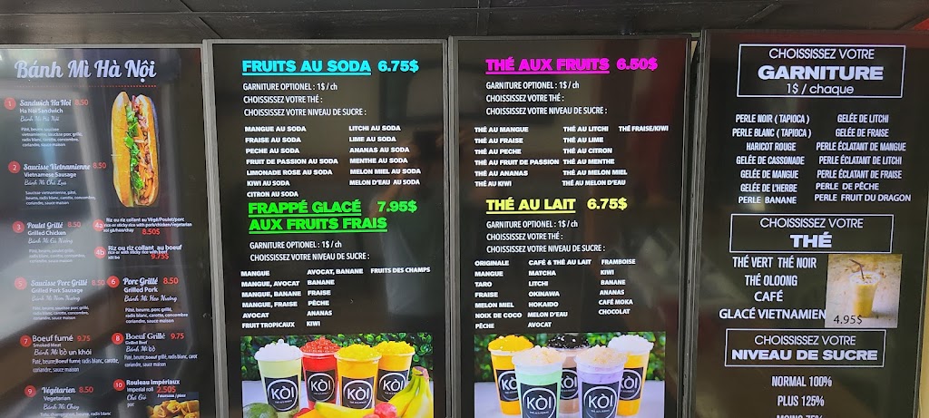 Enfin un resto qui se démarque des autres Excellent Banh mi bien garni et très savoureux Leurs recettes de rouleaux impériaux est très réussi Portion généreuse de perles dans leurs thé. Nous allons y retourner