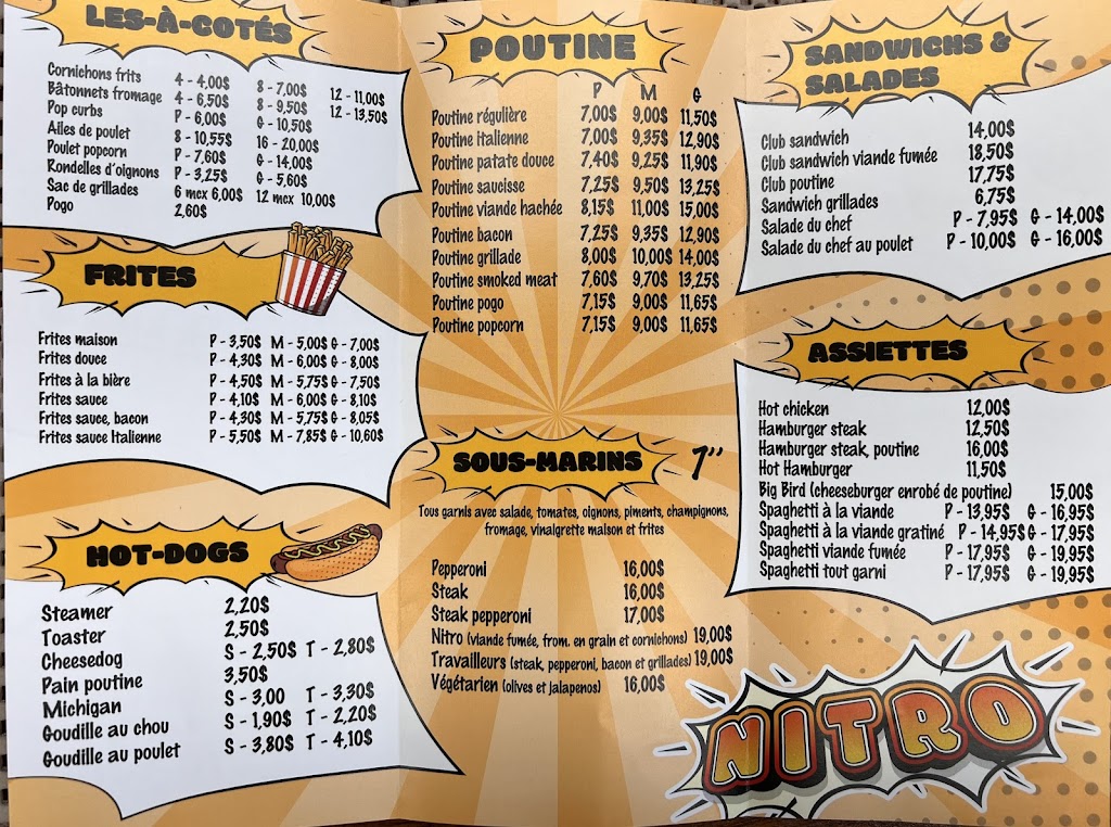 Pop curd: 11$ pour un format large qui est 14 mini grain de fromage frit dans le la vieille huile. Du vrais vol! Frites: de base très ordinaire. Cuite dans la vieille huile qui leurs donnes un aspec brun foncé dégueulasse. Poutine: faite avec les vieilles frites, du vieux fromage qui a commencé à jaunir et une sauce qui ne goute rien du tout. En d'autre mots, ce n'est pas de la nourriture mais de la texture qui se mange à condition de ne pas avoir de papilles gustatives. Le staff maintenant: un cuisinier qui se trompe et une serveuse qui se calis de tout. Ces deux la se chiallent après devant les clients et parlent ouvertement du fait qu'ils en ont rien a faire de la qualité du produit qu'ils servent. Garder le restorant fermé aurait été une meilleure option.