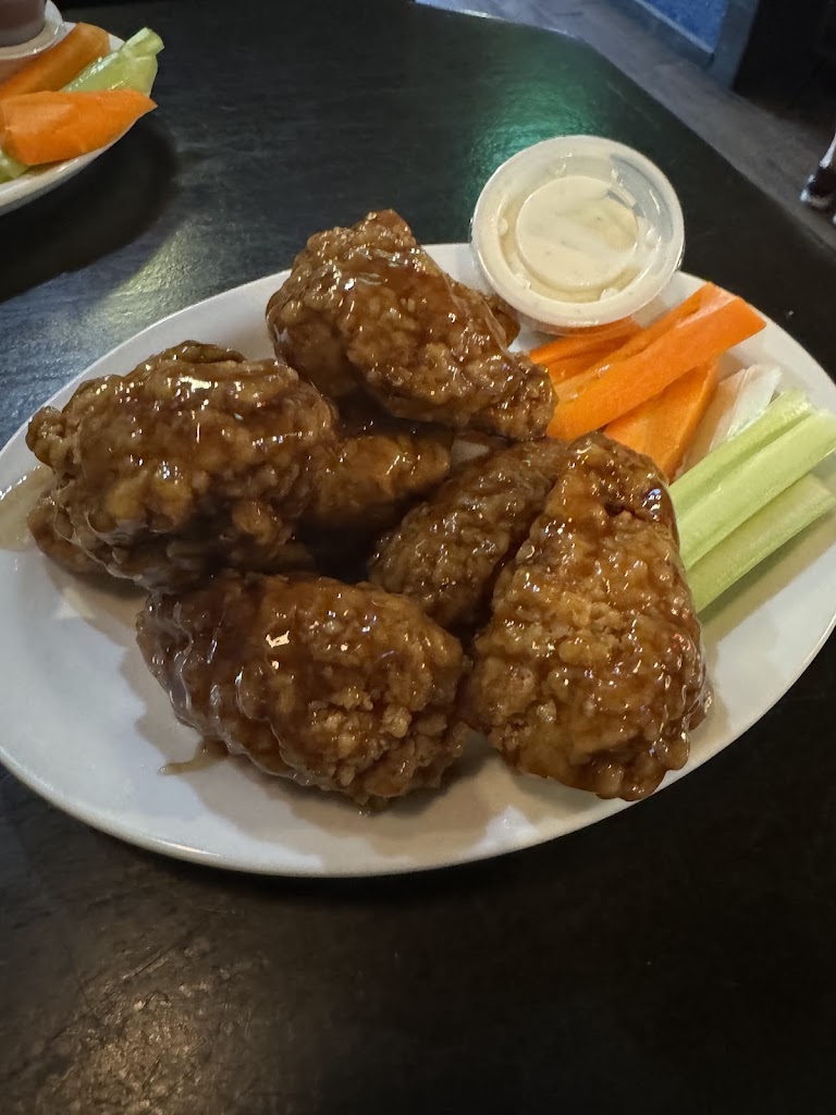 Good size wings. Half price on Mondays. Lots of beer selections on tap. Nice atmosphere. Live music on weekends.
