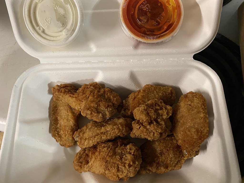 Honestly used to really like going here but the food quality has gone down. And for the price, meh not worth it. To start, they got my order wrong, thankfully it was just extra food I told them I didn t order or want. The Mac and cheese bites tasted freezer burned/cardboardy and the mushrooms were soggy inside and out & we had just picked it up, went straight home & unpackaged. The wings were half decent but still not what I was expecting. Bunch of tweakers inside, really didn t have a good feeling as soon as I saw that. Guys looking for their small baggy and others pushing through to grab spoons . I get it, be nice and all but in all reality they were loud and obnoxious so it was hard to look past. Really disappointed to be honest. Do not recommend.