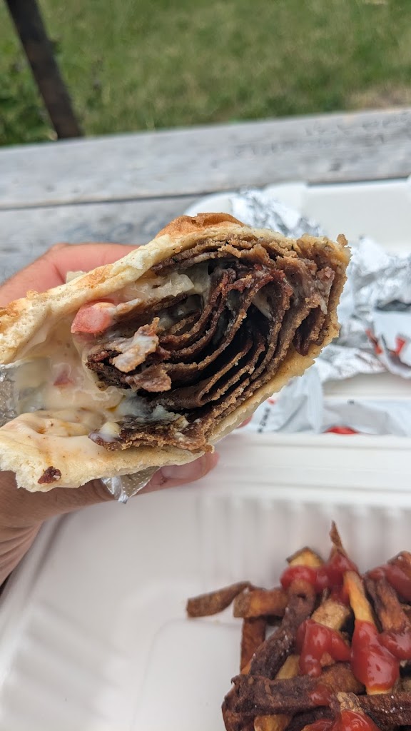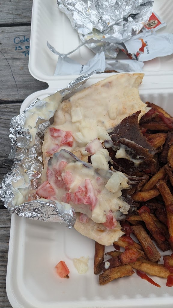Yikes! Place was dirty on entry and I can't even tell you what I saw on the floor past the counter. Had to eat outside due to the odd smell too. We ordered a lrg poutine and a gyro w/fries. Poutine looked good but the fries were very brown and almost warm. They certainly weren't fresh when they were dumped from a metal bowl that had been sitting behind the counter when we walked in. Gyro meat was very tough and dry. Could barely swallow it. And the wrap was drenched (waaaay too much) in an intensely sweet white sauce with maybe a dozen tiny bits of tomato and white onion?! That's it, gyro meat, tomato/onion and sauce - no freshness at all. Fries... Cold and dry. I really wanted to like this place. I generally love hole-in-the-wall, off the beaten path diners, but my daughter and I were thoroughly disappointed here 😢