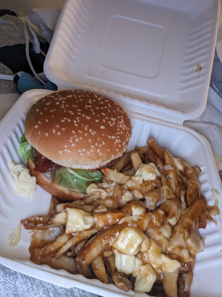 We had takeout last night. I ve never been but realized it was a bar when I walked in. I find stuff like burgers, fries, poutines or quick apps and meals are the best when ordering from bars. I made the mistake of ordering pasta and it was very lackluster. The chicken was cut into strips on top of the pasta and it was beyond overcooked, tasted stringy, almost like there were harder parts to the chicken. The burgers my family got were delicious but my pasta was not. I ll know for next time to order the burgers!