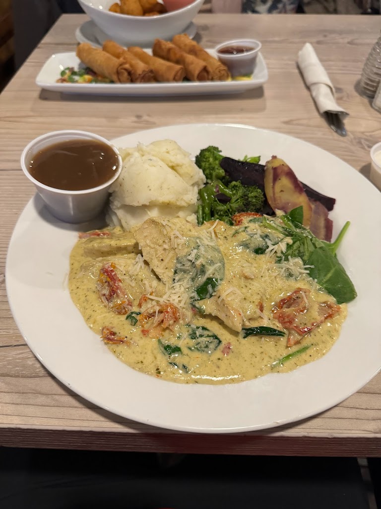 Took the girlfriend here for dinner and it was really good. We had cauliflower bites, spring rolls and the Tuscan chicken. All very yummy. Waitress was really friendly and helpful.