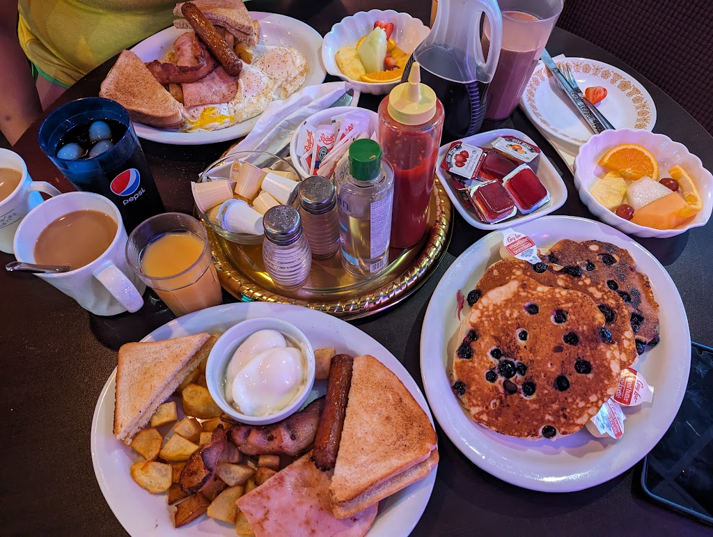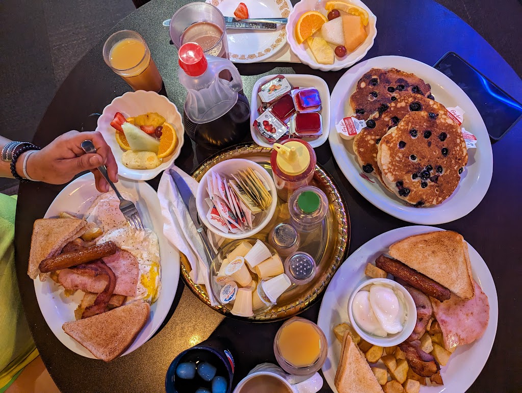 My wife and I have been here a few times. We usually order the the king breakfast (if Im not mistaking the name), it sells for a little more than $10, and it is very well served. We usually share it. On the dark side, we have to pay a $2 fee for splitting our meal.