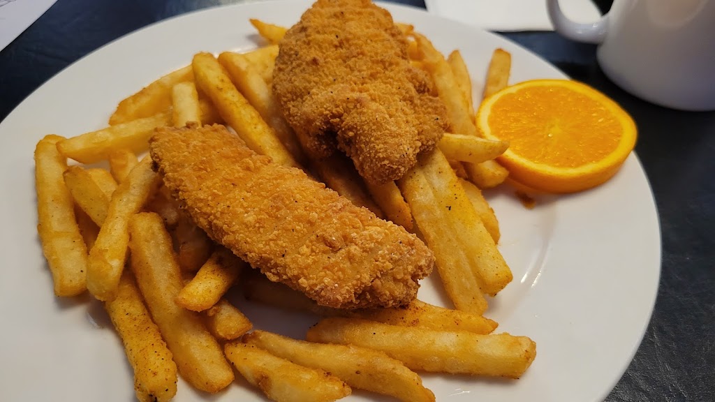 BEST FISH AND CHIPS I EVER HAD AT A RESTAURANT My wife and I had lunch there today while our car was being fixed next door. Every review about this place on Facebook was great, so we had to try it out. Thankfully, we did. First off, the food is delicious. I had fish and chips, my wife a veal. The only meat I eat is fish, so I eat a lot of fish and chips when we go out. This was my favorite. 2 pieces were perfectly cooked, crispy, seasoned, and a bit salty. Delicious!!! (Not the biggest portion Ive had at a restaurant, but not the smallest either. I would rather eat here than go anywhere else and get a bigger but greasy piece of fish.) The fish here wasnt greasy at all. I should also mention the fries are so good. Also cooked perfect, crispy, and seasoned. I would go back just for the fries, but Id get fish too while I was there . My wife also really liked her meal. The people seem really down to earth and very kind. After our meal, the woman said we could stay and wait until our car was ready as there were a couple extra tables, which we did. We ordered coffee, and she made some fresh, gave us a couple of refills, and then didnt even charge us for it. I saw some food being brought out to other tables. One looked like a large plate of dry ribs. A couple people ordered cheeseburger poutine I believe. I just thought wow! The portions they give are quite generous. I actually had a few fries and some salad left. My salad was fresh. I think I could have got a soup with my meal too, but I told her I dont eat dairy based soups. My wifes soup looked good . Everyone in there seemed like regulars and ordered their favorite meals. It just felt like a cozy, friendly place to be. We definitely will be returning here next time we go out to eat.