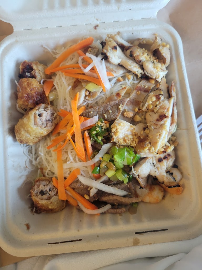 Best char-broiled chicken vermacelli noodle bowls and springs rolls in the city. Everything is good but this is my favorite. Must try