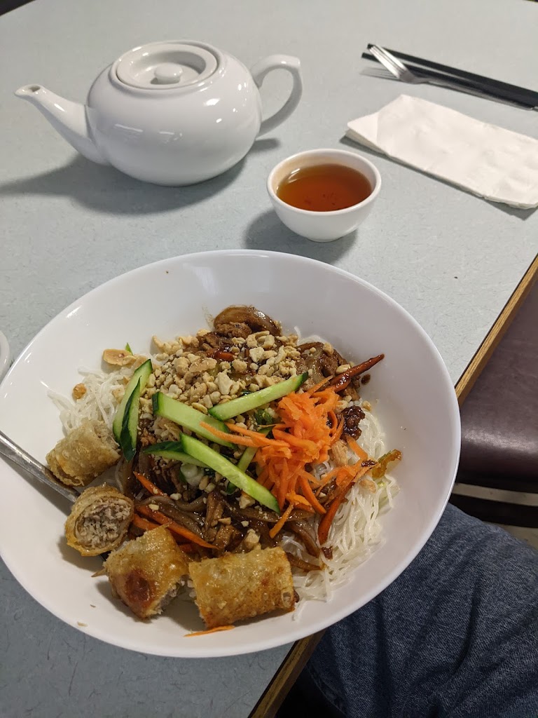 Tremendous vermicelli bowl and shrimp salad rolls, plus great service!