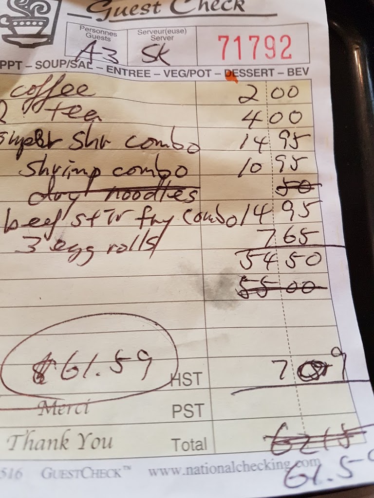 I started going to this restaurant a few years ago because I work nearby and have been going weekly ever since. The owners are two of the nicest people I have ever met and really make you feel like family. The food is reasonably priced and I've never once had a bad meal. The chop suey combo is my favourite!