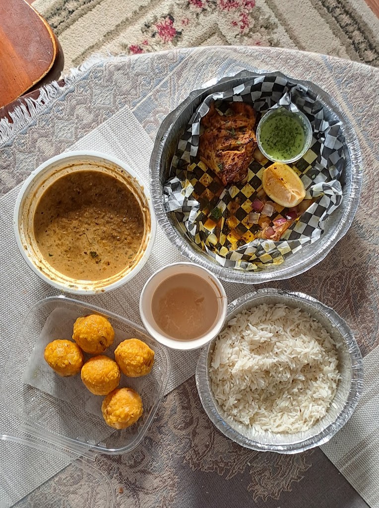 I ordered the Daal Makhani with rice, as well as the Achari Chicken, Masala Chai and Boondi Ladoo. Wow, it was all so good and the flavour on the chicken stood out very well with the lemon, onions and what I believe was mint sauce on the side. I didn't ask for spicy because I didn't grow up eating much spice, but I think next time I'll ask for a bit of a spicy kick. The young lady serving me was also very kind and sweet. There was some catchy music playing and comfy chairs for customers to wait. It only took 30 minutes to prepare my food. I highly recommend this place, whether you are accustomed to Indian food or are wanting to try it out. Keep in mind the pictures I took are after some of the food was already eaten. It smelled so good, I forgot to take pictures of the fresh food.