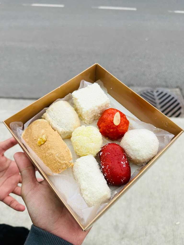 So good, the kaju barfi was less sweet than Im used to which I liked, the taste of the cashew really shines through. Amazing staff as well, got to try a few samples :)