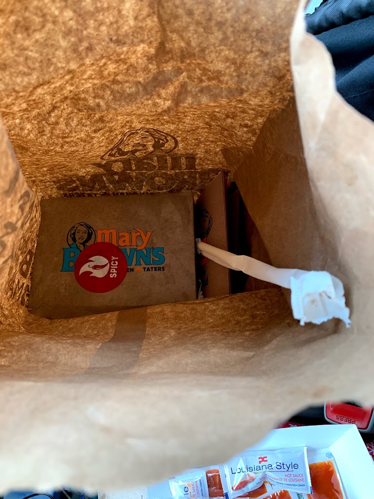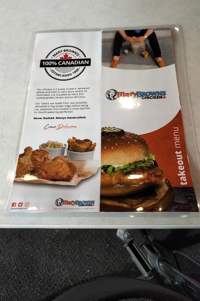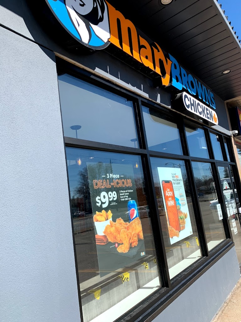 Thought I d try Mary Browns -gotta be like the old days in Newfoundland. However, when I ordered a 3 piece, chicken /small gravy /small fries - it came to$20.05 and I waited and waited and waited. -Much better deal at Popeyes. You get 3 piece chicken /biscuit, drink/med gravy for $14.68 -add fries for $2.19. Better price and it s right away.