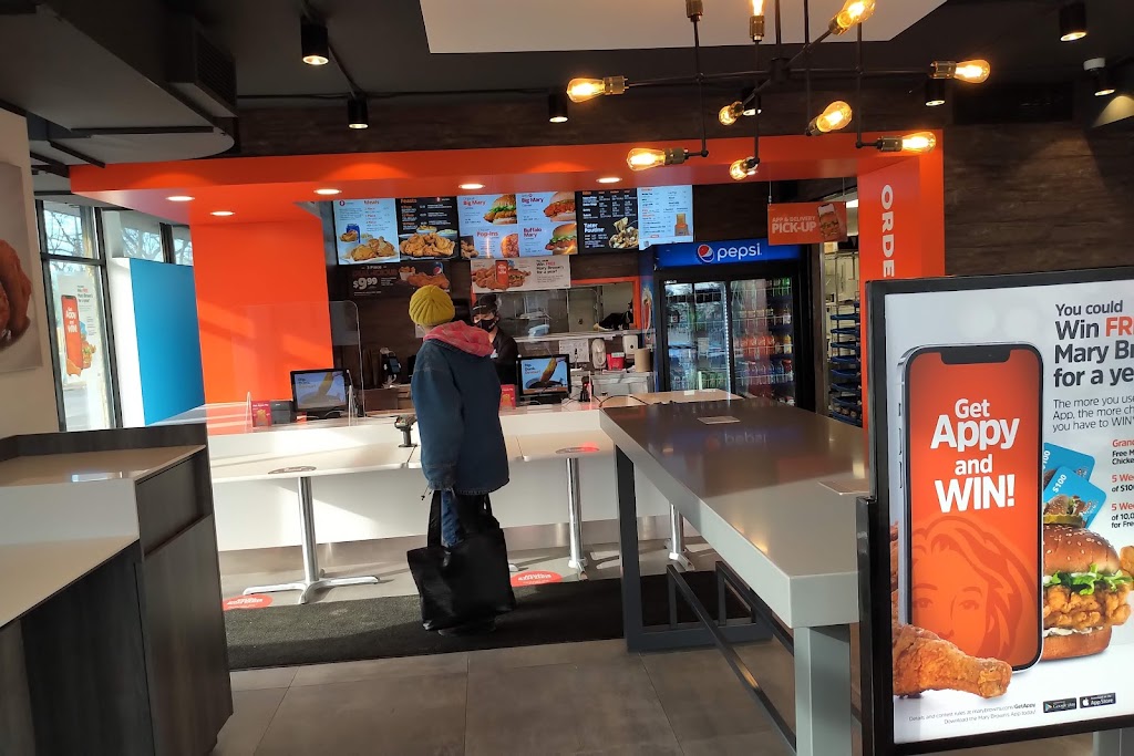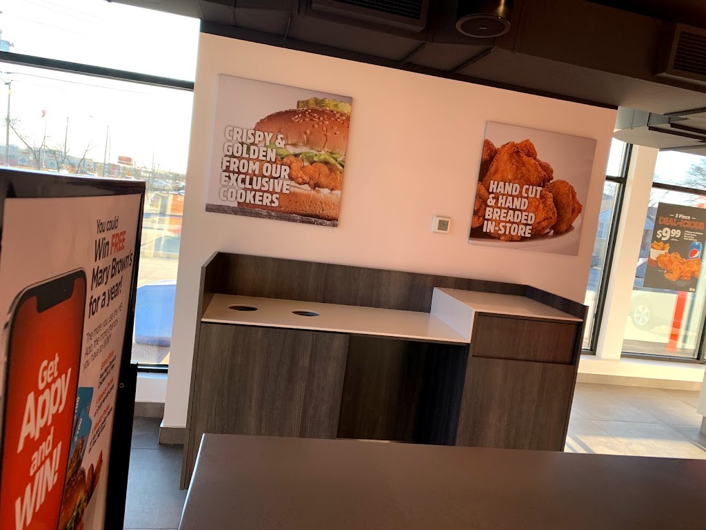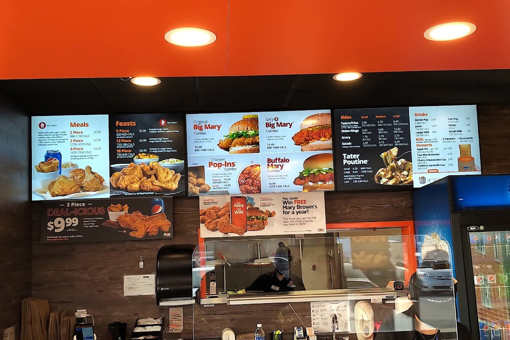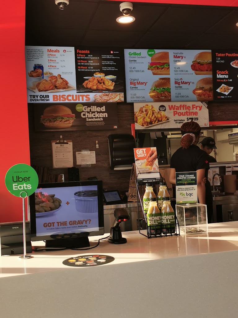 Mary Browns is an East Coast classic that has slowly expanded West and I couldnt be happier. I like this location in particular as its been very clean (even the bathrooms) and excellent cook levels on all the food-- which weve tried a sampling of most of the sides and mains. Their brand rockstar is their taters (seasoned potato wedges) and Ive never found its equal! Easiest thing to recommend. Chicken sandwiches and chicken are honestly better than average, but nothing to write home about. We have a lot of homegrown options in Toronto, but if youre bored of fast foot chicken like KFC, Popeyes and Churches; Mary Browns is probably a breath of fresh air. For quality of product, Id give Mary Browns a 4/5-- its good fast food level dining. Ive bumped an extra star on there as their staff seems great and the location stands out from the rest Ive been to on the East end of Toronto. If this review helped, please click the thumbs up below!