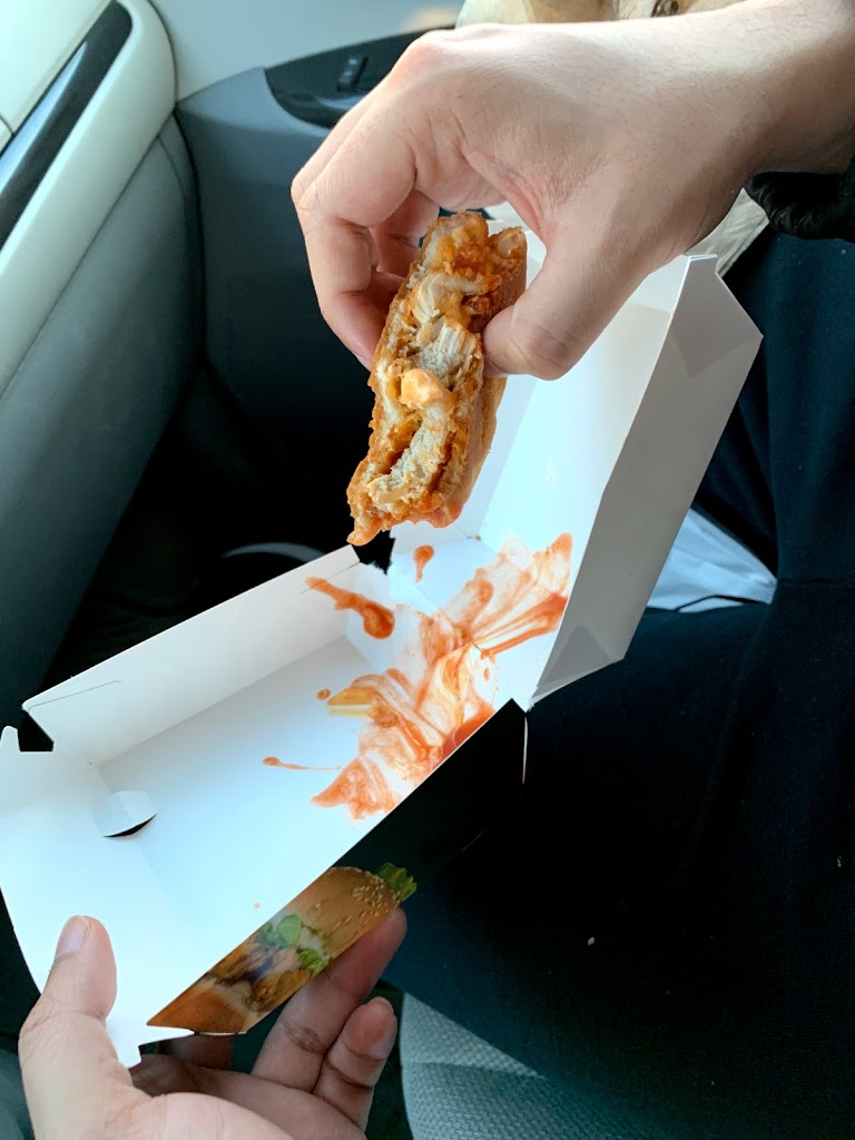 I got the original chicken burger and it s tastes really good and crispy I also love the mayo sauce and the pickle on top, and l want to try the spicy chicken burger next time