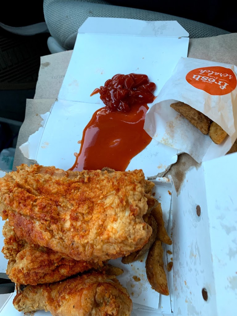Dunno what happened but this seems to be the only good fried chicken chain. The other two are bad from the get go or bad the next day. This chicken is good for several days. Not greasy tasting or salty. A good balance. The only problems were the fries were soft, not undercooked and the gravy had a burned aftertaste. Strangely enough, nuking the gravy next day got rid of the the aftertaste.