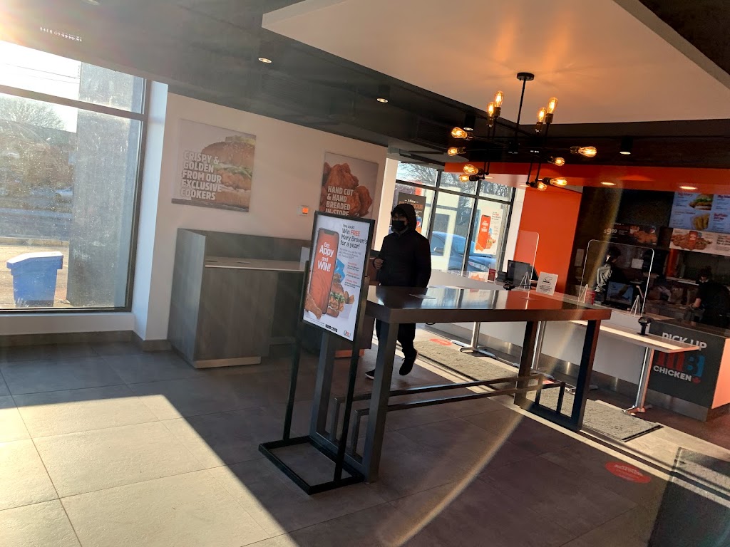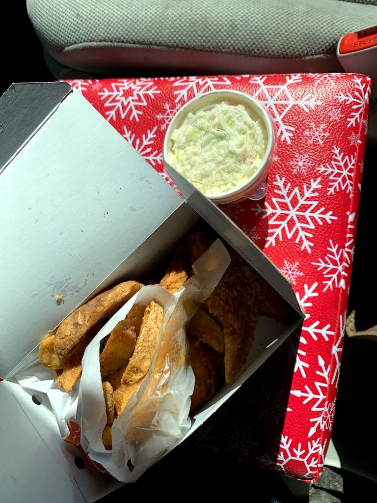 I find the chicken and taters here cooked fresh, and the chicken sandwich is good, i hope they can put banana peppers next time. Parking: Parking here depends on the hours. You can park in front of the restaurant if its not busy.