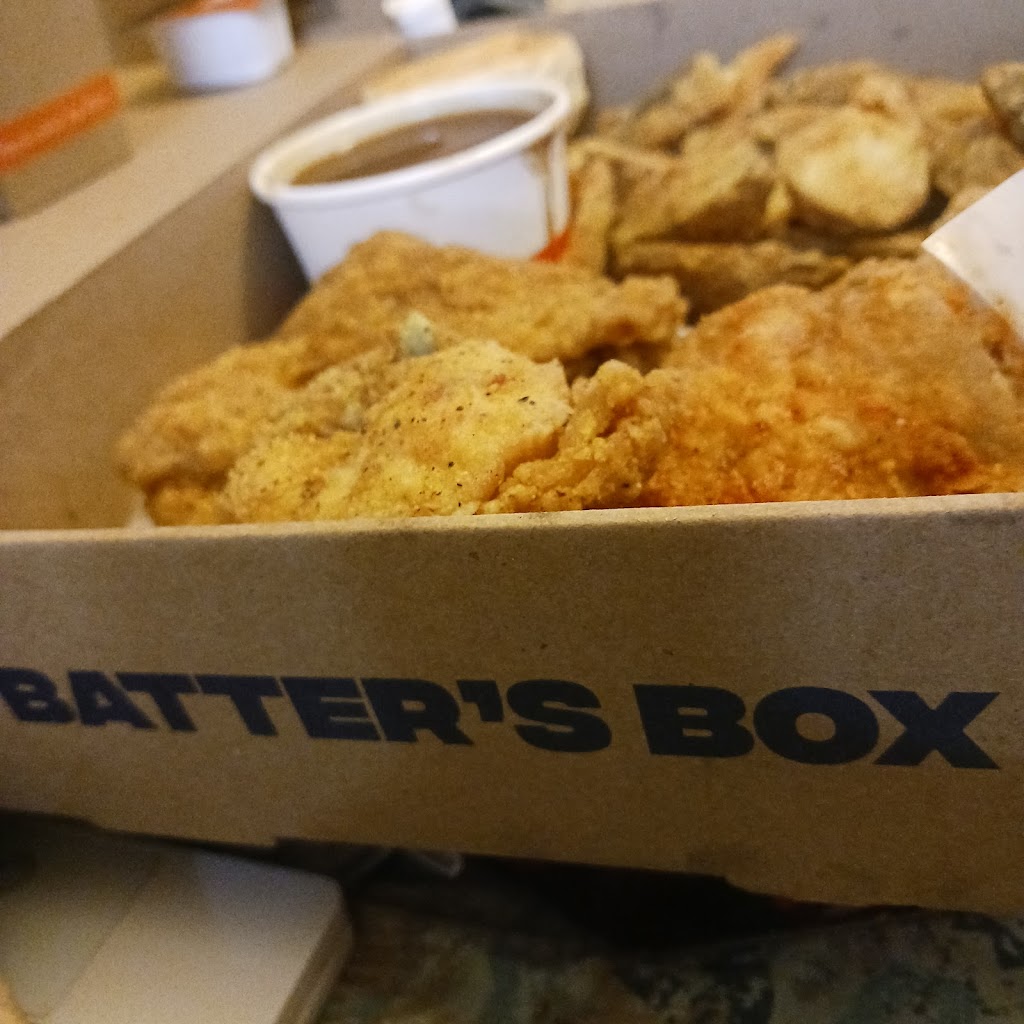 We tried the Batters Box on the skip app. Wonderful value! 6 pieces of chicken 1 medium taters, 2 biscuits a 1 medium gravy for $21.99. It's a large box! So happy for such a juicy and crispy treat!