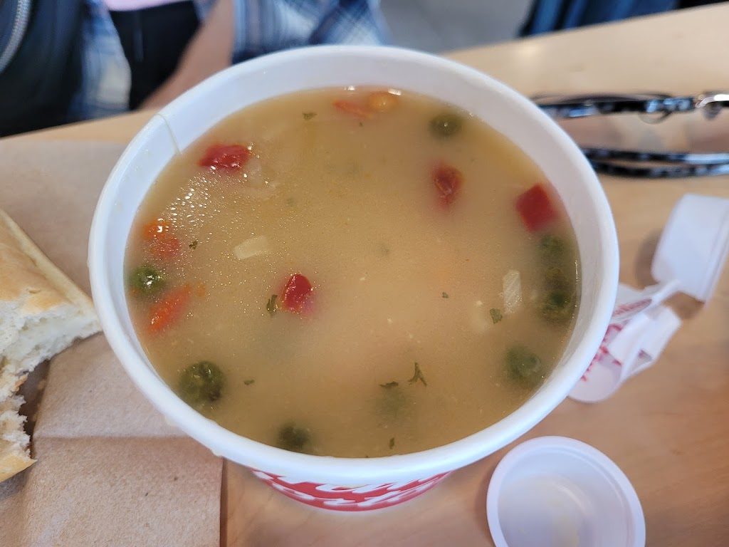 Horribly slow service at lunch time as there was only one cashier and two workers. The line went all the way to the bathrooms and it took about 30min to get to the front of the line. The roast beef sandwich was was dry and pretty bland. The potato wedges and chicken noodle soup were good though.