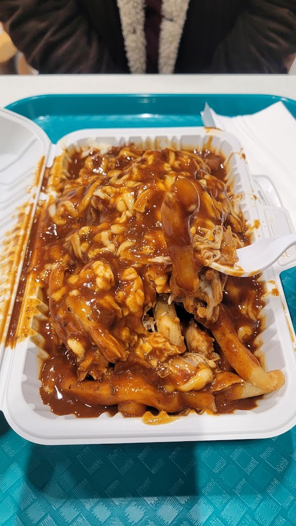 Worst poutine Ive ever had. The fries are flooded with gravy and its sweet. Even their spicy poutine is sweet. The jerk chicken is totally unecessary and doesnt add anything to the poutine but a weird texture. Would give zero stars if I could. I dont know how students line up everyday at lunch to get this stuff. Shows what society has finally come to.