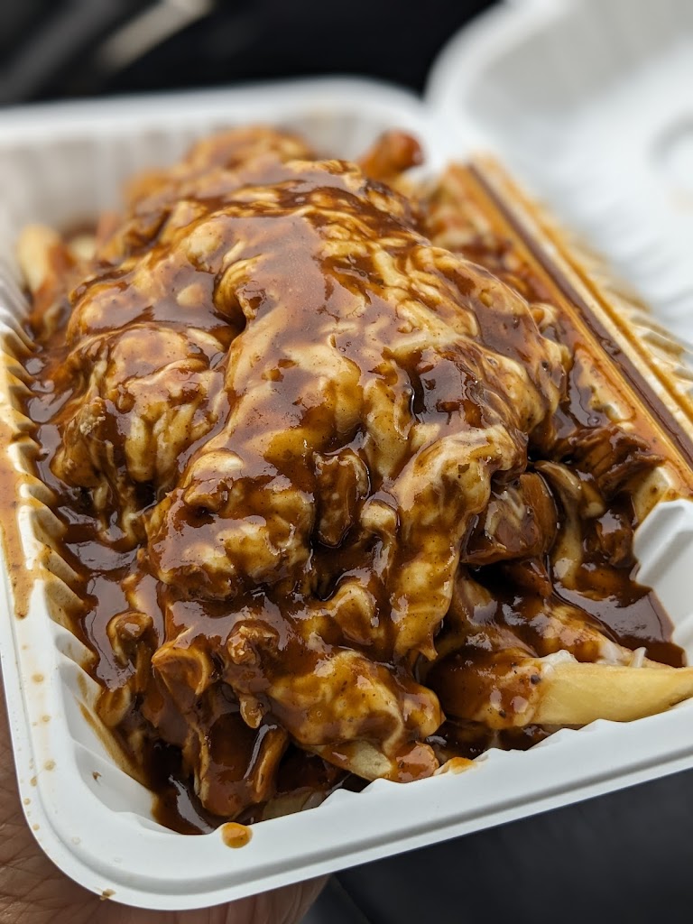 The jerk chicken poutine is my go-to. Full of flavour, almost overflowing portions, cheesy fries, juicy chicken. You can get it in mild, medium, and spicy. The mild can taste a little bland after a while, and the spicy is really hot. The medium is is half mild half spicy blended. The small can fill you up for a normal meal, but the large is also available with a drink for bigger appetites, all under $6. Best eaten when still hot and fresh, like all other poutines. Its one of the most satiating poutines Ive ever eaten, and it never gets old.