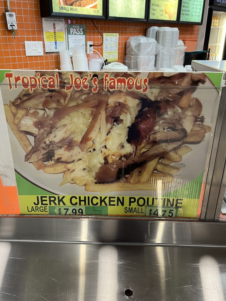 Tldr: takeout Caribbean food. Tasty, cheap, great value. would recommend Great place for quick, delicious Caribbean style food. Tropical Joes has been open for a while, and its situated within the main food court at Woodside square as a takeout joint. They offer various options and combos with choices like: jerk chicken, curry (chicken, beef, goat), oxtail, and roti dishes. Used to come here often (still go occasionally), and i dont think its on the menu, but i usually get the Jerk chicken poutine. They pack the box with a load of fries, jerk chicken, cheese curds, and gravy. Comes in a large size (with the option to make it to a combo w/pop for under $6) and a smaller size. The fries are ok, but what youre here for is the flavorful jerk chicken blending in with the creamy cheese and savoury gravy. If you do decide to get the poutine, get ready for insane cheese pulls and mad itus. From time to time i also get the 1 meat meal (chicken or beef), or the boneless beef roti. These options are pretty bomb too. The staff (one man and a woman) sometimes has RBF, and theyre usually at the back (dont know what exactly what theyre doing back there lol) and they come out when they see someone is waiting to order. But trust me, these guys are super nice, and they give you tons of food. The price here is amazing for the amount of food that you receive.Would recommend to anyone!