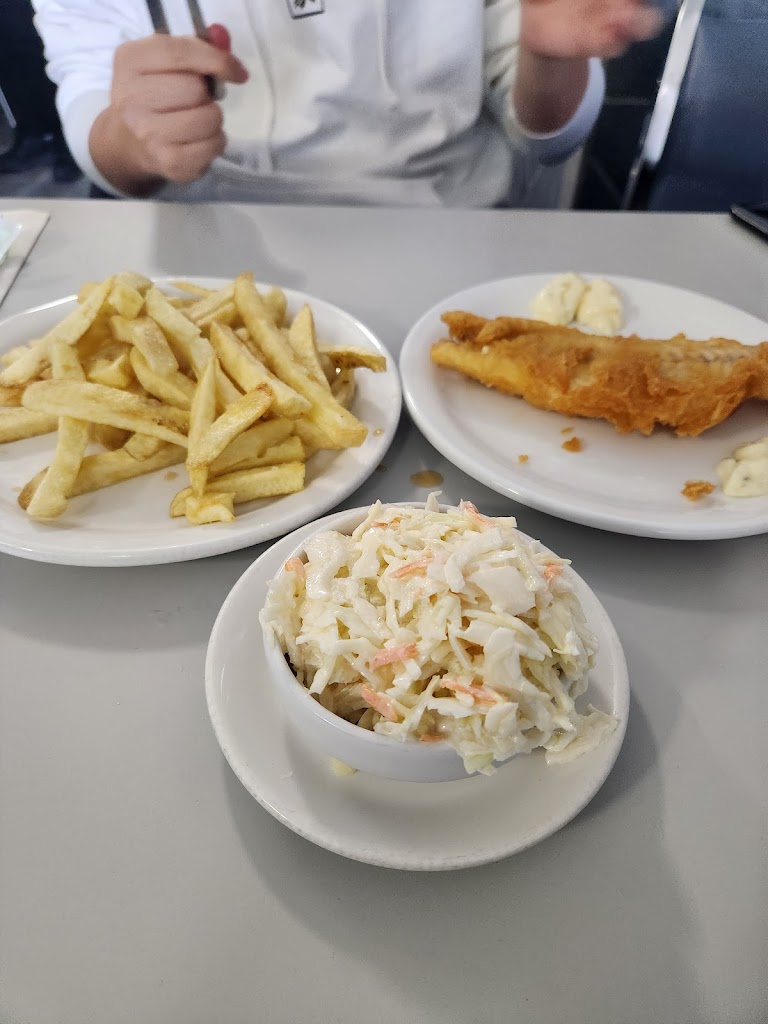Delicious fish and chips. Fish was very crispy and light. Will be our new go to when we're craving fish and chips. Restaurant itself was had a very basic interior. The service was good, and all the staff was incredibly friendly. Definitely worth visiting!