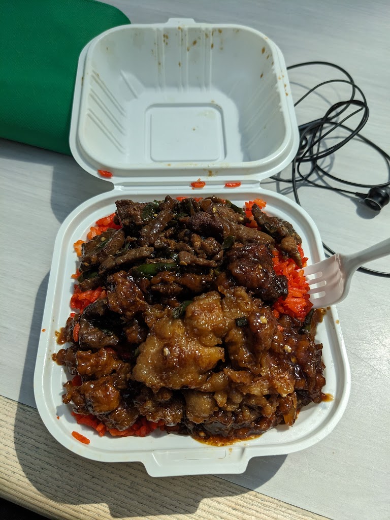 This is my brothers and my go-to place to eat if we re near Malvern town center!! Many students from the neighbouring school agree so as well since they walk here at lunchtime and stand in line for the affordable meal. It s seriously so cheap, yet so delicious! It s also HALAL certified, which is crazy and I love it! I love eating the spicy red noodles while my brother likes the red rice, they have chicken and beef and vegetables and stuff and they give you so much for the price! Ngl it s kinda rubbery but idc it s still yummy and really filling! Dietary restrictions: Halal meat