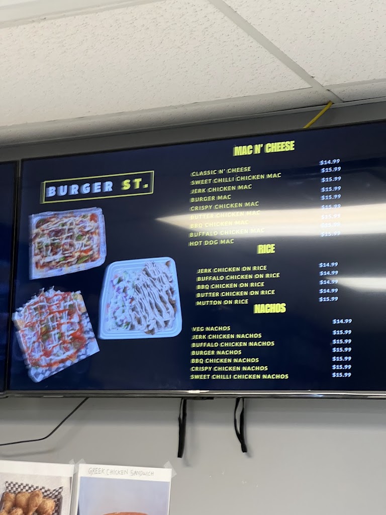 I recently visited Burger Street, and this place is an absolute gem for anyone looking to explore creative comfort food. Their menu is packed with unique options that make it stand out from typical burger joints, especially their range of poutines and mac and cheese varieties. Poutine Heaven: Burger Street offers an impressive selection of poutines that deliver both on taste and value. From Crispy Chicken Poutine to Butter Chicken Poutine, each option is loaded with toppings that elevate the traditional poutine experience. Whether you’re into classic flavors or adventurous twists, there’s a poutine for everyone, and the portions are generous, making it a great bang for your buck. Mac and Cheese Variety: One of the highlights here is their extensive mac and cheese menu. They’ve put a creative spin on this classic comfort food, offering unique options like: • Buffalo Chicken Mac N Cheese • Jerk Chicken Mac N Cheese • Sweet Chili Chicken Mac N Cheese • Burger Mac N Cheese • Butter Chicken Mac N Cheese Each version brings something different to the table, blending traditional mac and cheese with flavors from around the world. The mac and cheese dishes are rich, flavorful, and well-portioned, perfect for anyone wanting a hearty meal. Other Must-Try Items: Burger Street’s menu doesn’t stop there. They also serve a variety of burgers, hot dogs, and fries that are well-priced and satisfying. If you’re a nacho lover, they’ve got options like BBQ Chicken Nachos and Buffalo Chicken Nachos. The Greek Chicken Sandwich is another standout, with fresh toppings and a unique flavor profile that’s different from the usual fare. Things to Note: While the food here is fantastic, I found that the staff wasn’t particularly friendly. They could definitely improve on customer engagement to make the experience more welcoming. Also, if you’re visiting at night, be aware that the area can feel a bit sketchy, so it’s something to keep in mind for anyone who might feel uncomfortable in certain environments. Final Thoughts: Burger Street has taken comfort food to a whole new level with its creative twists on poutine, mac and cheese, and more. Despite some minor drawbacks, the food quality and unique offerings make it worth a visit. If you’re in the mood for something deliciously different and packed with flavor, I’d recommend giving this place a try!