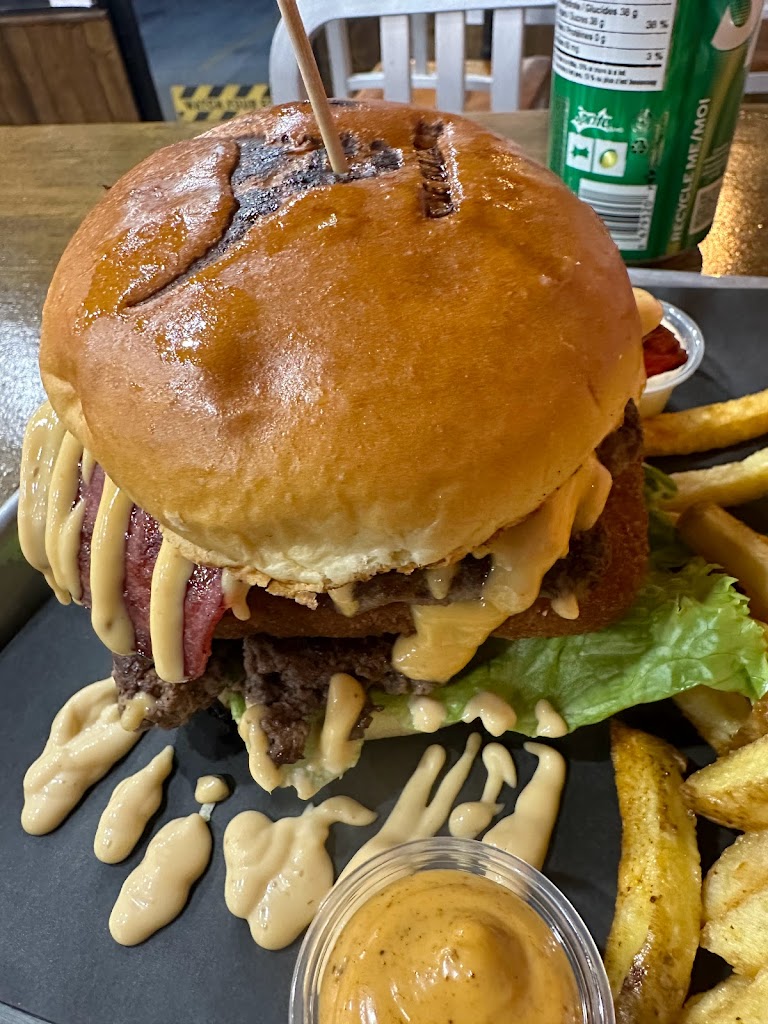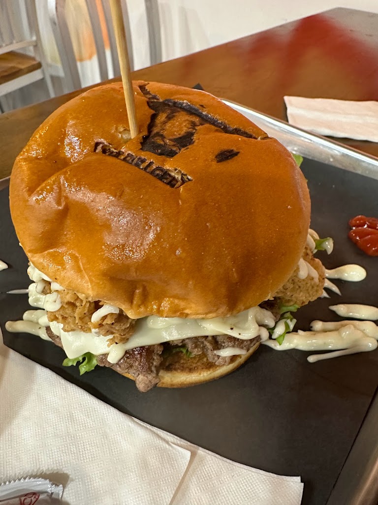 Ive seen this place for a while now but recently got to try it. I can say that the burger tastes pretty good. Only thing is, the place was a bit messy. Walked in to dine in and there were crumbs on every desk and seat and what appeared to be dried up sauces or drinks. This didnt give me a good impression as the place wasnt busy or anything so it looked like they purposely ignored the mess, especially when the guy at the front was just on his phone which i dont have an issue with, just wipe down the tables and chairs before you do that. Nobody came to wipe down the tables afterwards either. Beef bacon came crunchier than a burnt potato chip but they did provide a new slice of bacon so the service was not bad.