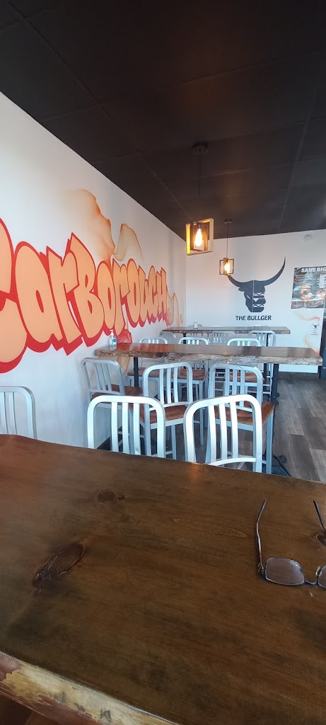 A nice burger joint serving up a wide variety of burgers. They have some crazy burgers to try out that you cannot find anywhere else. All the food was tasty and made fresh. The only issues we had was that the philly steak was overcooked and hard to eat. I also wished they had some music playing in the restaurant too as it would add to the experience. Love the artwork with the Scarborough art and the bulls on the wall, adding to the theme. Overall, a good experience!