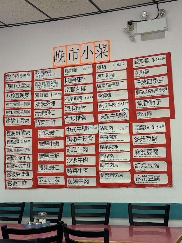 Old school Chinese restaurant with menu on the walls. Decor is dated but it is very clean. Had the pan fried beef ho fun, with HK tea and complimentary pork bone carrot soup. It was excellent and at a relatively inexpensive price. Would go back again.