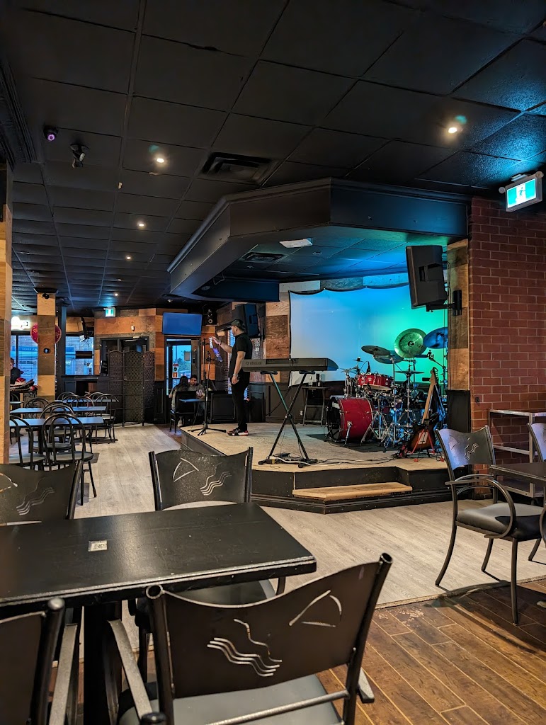 Great food and friendly service. Live band on Fridays and weekends. Small dancing area in front of the bar. Open late. Ample parking at the rear of the building.