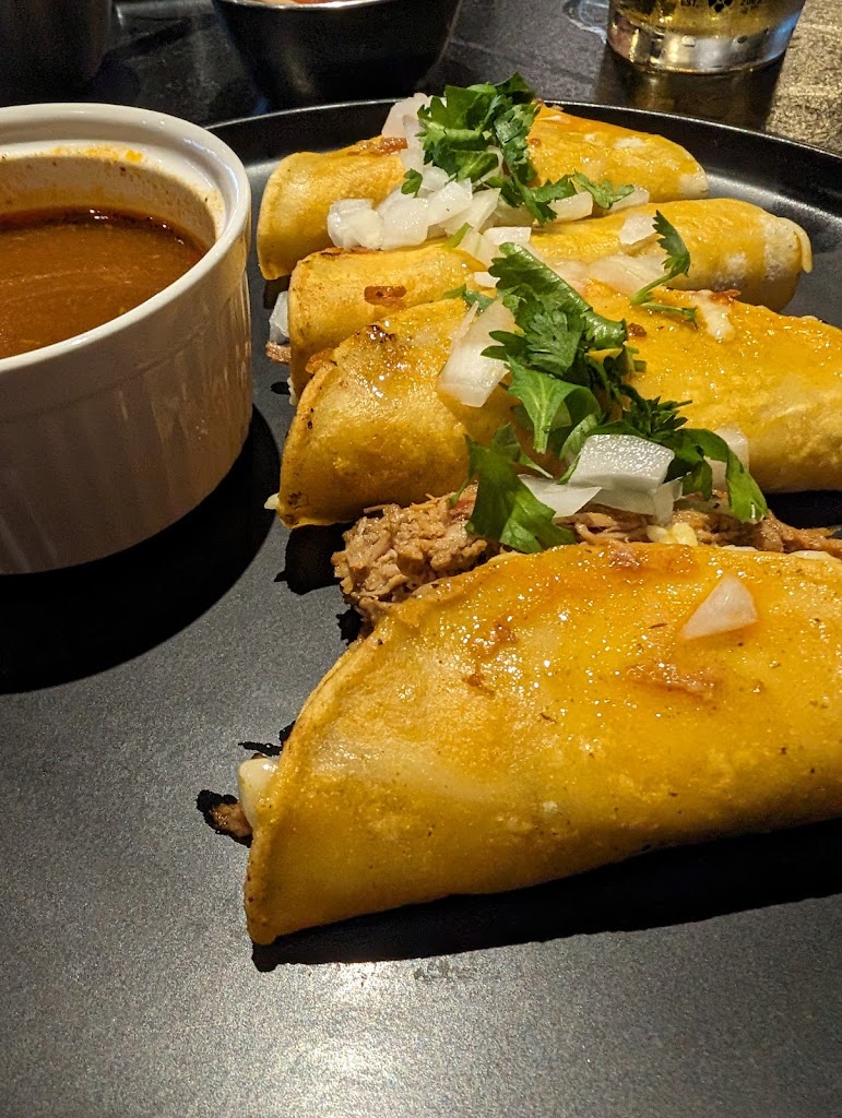 The atmosphere was really nice, wasnt packed and noisy. Staff was really friendly. The menu had such a variety of options, but in the end ordered the tacos de birria. It was very, very good. Had the frozen strawberry Margarita, delicious. Service was great, no complaints here. Will come again soon.