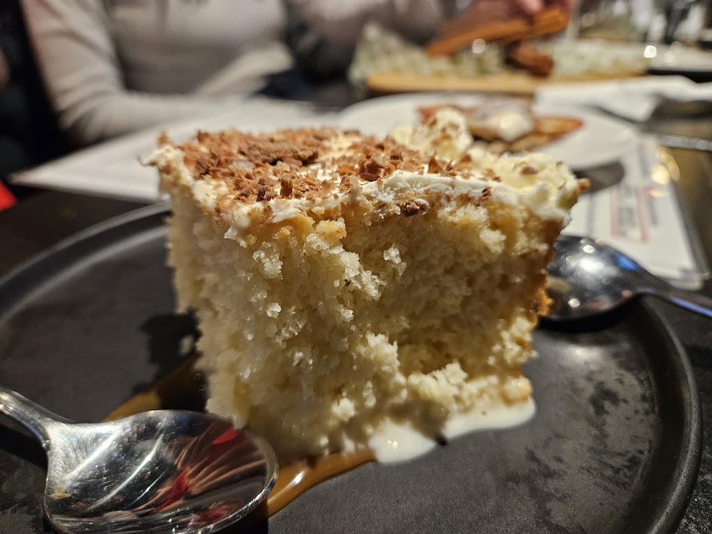 The food was really good, meat wasn t dried out or chewy. Very flavourful with a good amount of meat in the tacos. We ordered a bunch of different dishes (apps and mains) for the table as we were celebrating my son s birthday there. They allowed me to bring a cake which they prepared with the candles I brought, and they also gave us plates, spoons and a cake cutter to use for the cake. My only issue was the women s washroom. It needed attention. Only one stall had toilet paper, the soap pump was left uncovered because someone added water to it and the paper towel dispenser had no paper towels. I hope they improve on this because I d really like to come back and eat there again!