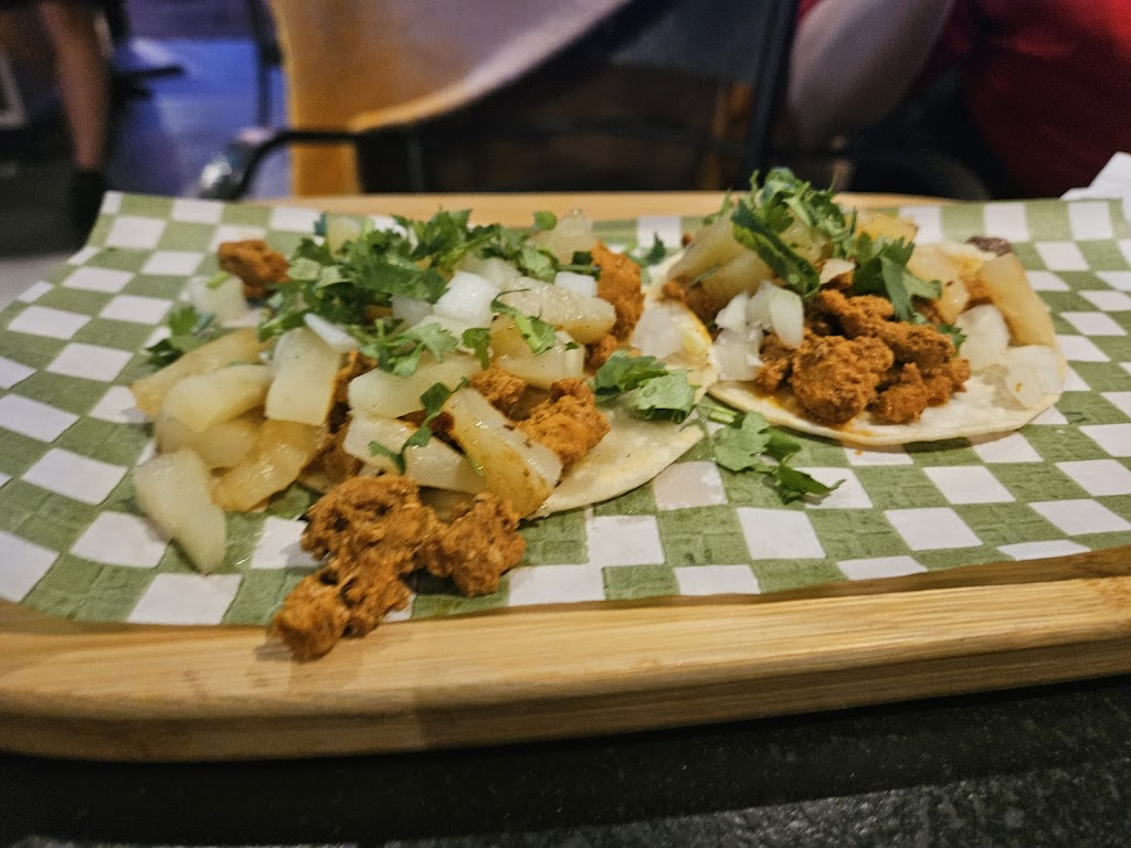 Got tacos to go, but the atmosphere was vey cool. Great beers on tap and amazing authentic tacos. Even hosts live music. Will definatly be going back to eat in.