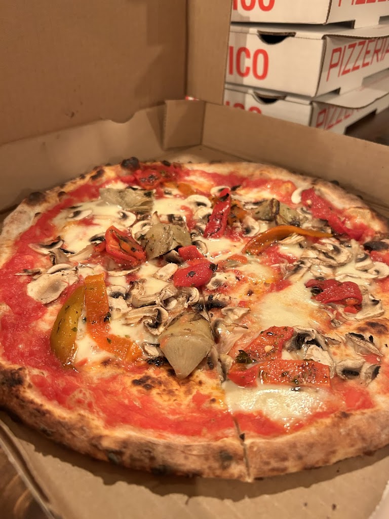 This place is a regular spot for me, and it never disappoints. The owner is real Italian, and makes everything to order down to the minute of when you're expecting to eat! The wood oven produces the greatest chew in the crust. Pancetta e patate is something worth trying, the rosemary oil on top is beautiful. The quattro formaggi is very indulgent and gorgonzola-forward, wonderful if that's your type of pizza (it is for me!). The olives that come when you dine in are really beautiful too. Wish they had an app or two on the menu or something to share in a group.